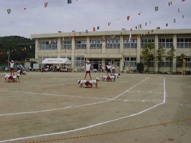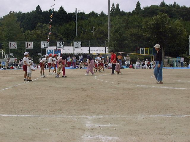小学校の児童数が少ないので、おとなも一緒に運動会。
