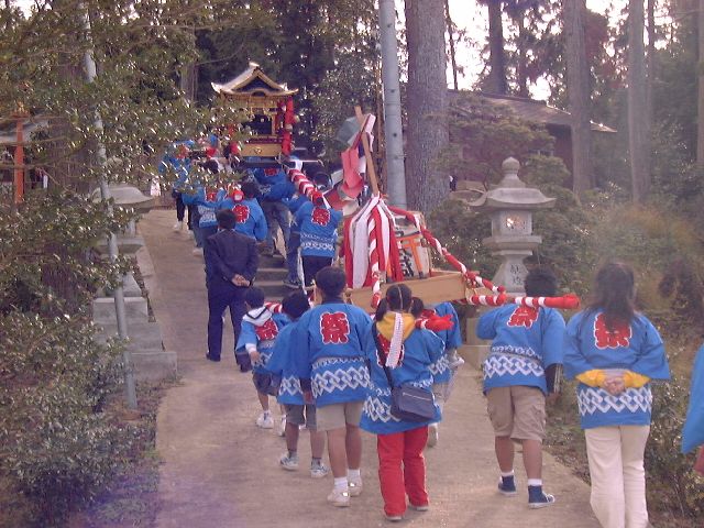 10月17日、秋祭り。みこしが郷社大神宮を出発して童仙房内をねり歩きます。